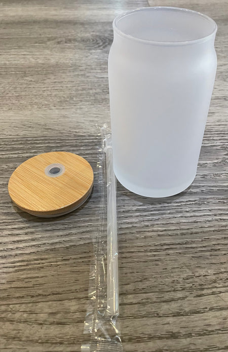 Frosted Sublimation Glass tumbler with Bamboo lid and Straw 16oz