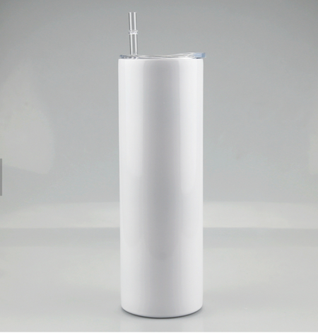 White Straight Skinny Tumbler with Metal Straw and lid, Sublimation Blank, 30oz, Double Walled, Stainless Steel